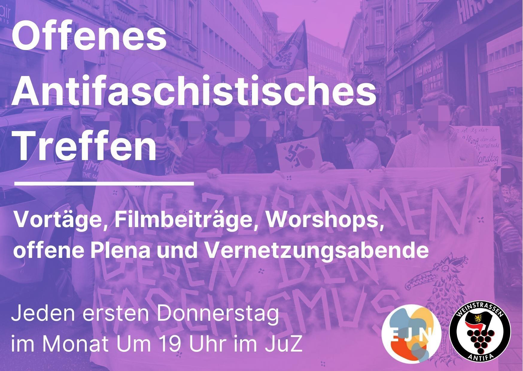 In Kooperation mit der Weinstraßen Antifa organisieren wir Treffen, Vorträge, Diskussionsrunden etc. rund um die Themen Antifaschismus und politische Bildung.